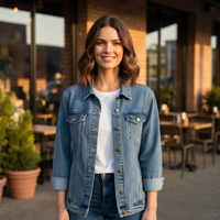 This classic denim jacket for men features a lapel collar and button-front closure for a timeless look. With convenient front slant pockets, it's as functional as it is fashionable. Sporting a medium denim wash, it pairs effortlessly with any outfit, adding a touch of rugged charm to your wardrobe.
