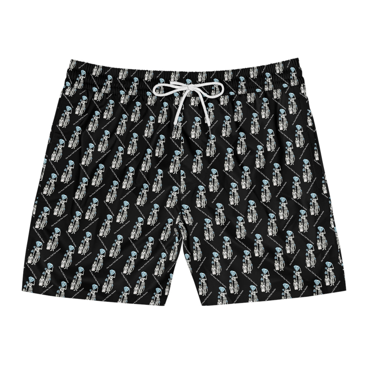 Diamond in the Rough- Black Men's Mid-Length Swim trunks - S / White drawstring